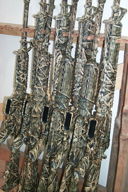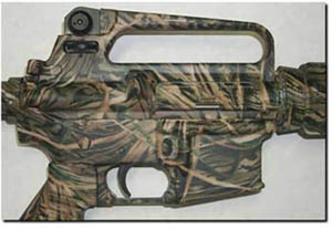 On the racks ready for a new home, these rifles are top notch examples of a factory camo coating. Done in a finish that will last for many years, this camo finish is over all of the rifle, not just the plastic furniture parts that you see from so many other manufacturers. |