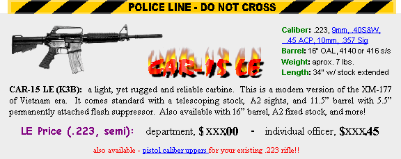 LE Price (.223, semi): department, $XXX.00 - individual officer, $XXX.00