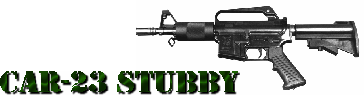 CAR-23 Stubby (K23B): An extremely maneuverable unit to maximize small-unit firepower with minimum weapon size. Can be used by air, ground, and sea transportation units, SWAT/SRT teams, and strike force units. All parts are manufactured to NATO mil. spec. or better, and it is based on the flexible M-16 system of weapons. Available in semi-auto or select fire versions (3-shot burst or full). E2 (A2) sights standard - not shown.