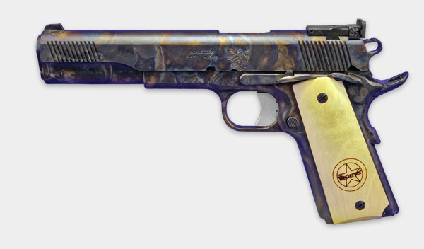 This model was the first color case hardnened 1911 pistol Olympic Arms offered. The Westerner features a color case hardened frame and slide, 5" barrel and custom laser etched grips.  Product Details...