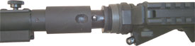 Here is how it works. To the right you can see the stock adapter and the push-button release/lock. A simple push of the button releases the stock, and slipping the stock back over the adapter until it latches, locks it in place. |