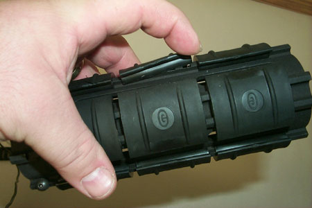 Here you can see that they simply snap on and off at the will of the shooter without having to remove the other panels forward or aft of the one you wanted to remove. Instant access to what ever area of the rail you want, with a "click". |