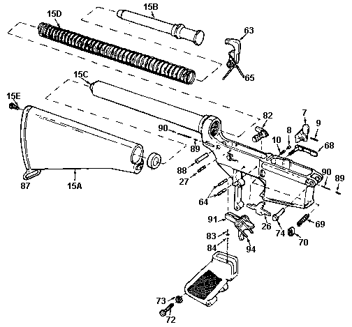 AR15 | A2 buttstock, complete | see p/n T31 | AR71A | Pistol grip assy | $7.00 | |